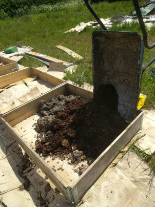 Loading manure into bed