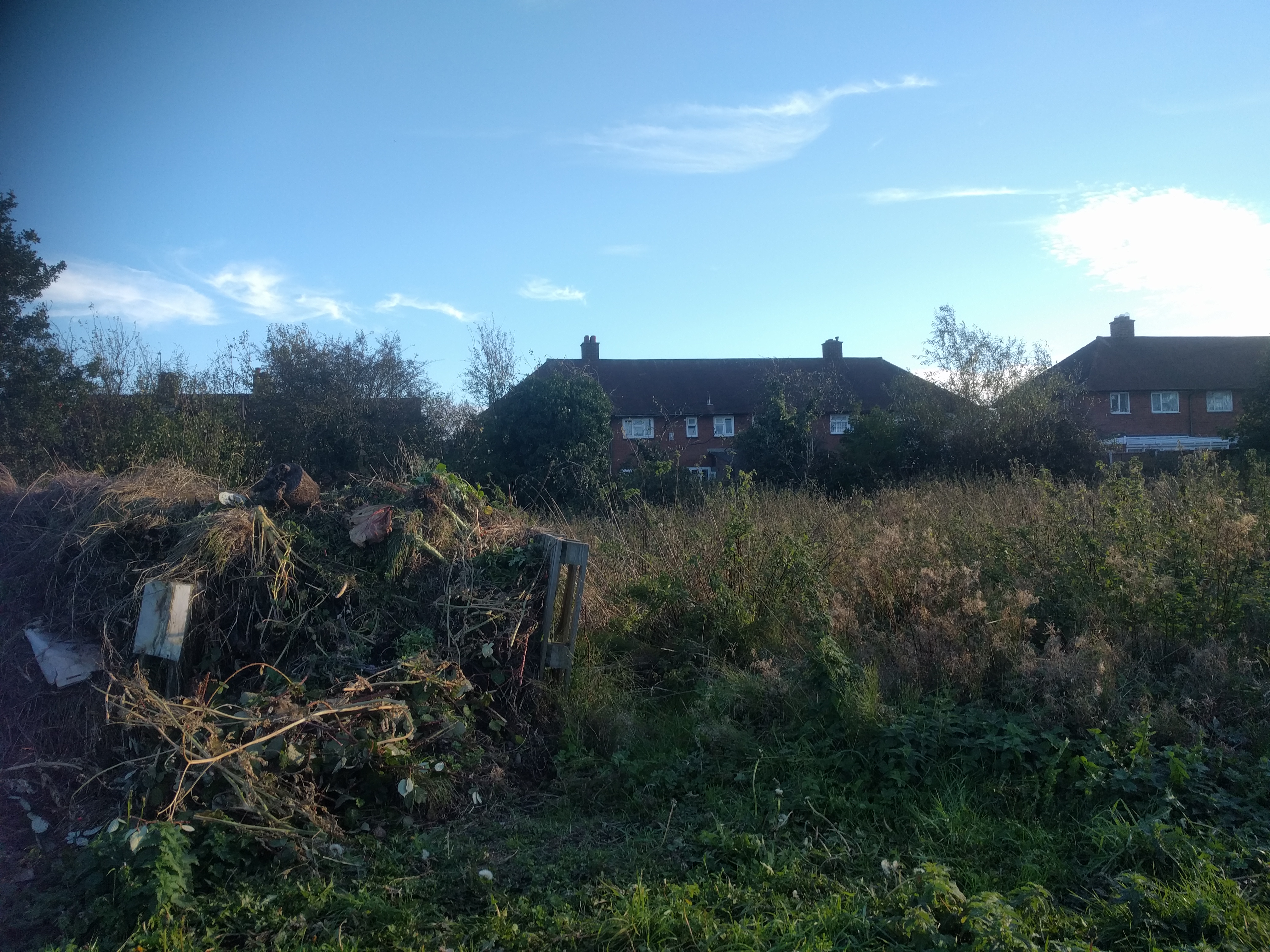Previous Image Next Image 2018-10-20 Communal compost & overgrown plots Plot south across the road 52.400053 -1.953494